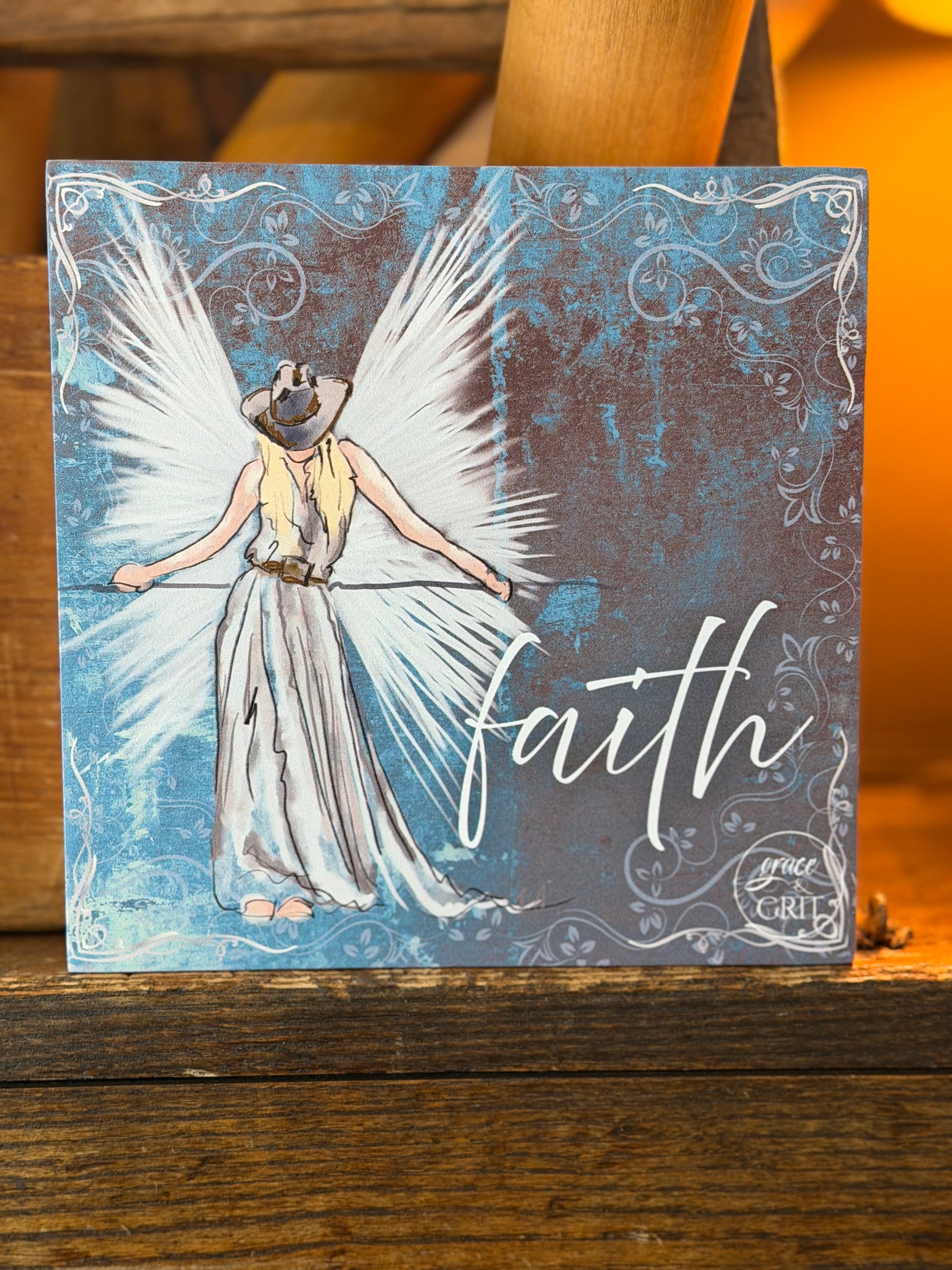 Faith 7x7 Composite Wood Art Sign – Cowgirl Angel
