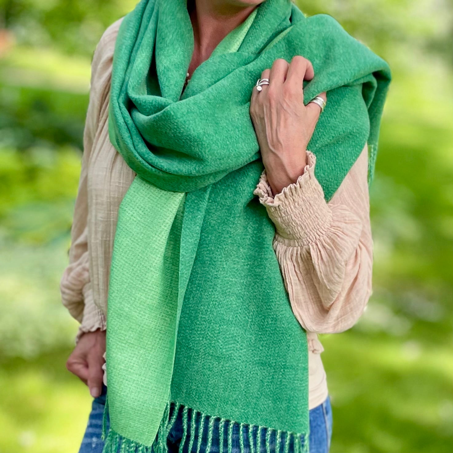 Chloe Cashmere Blanket Scarf. Green