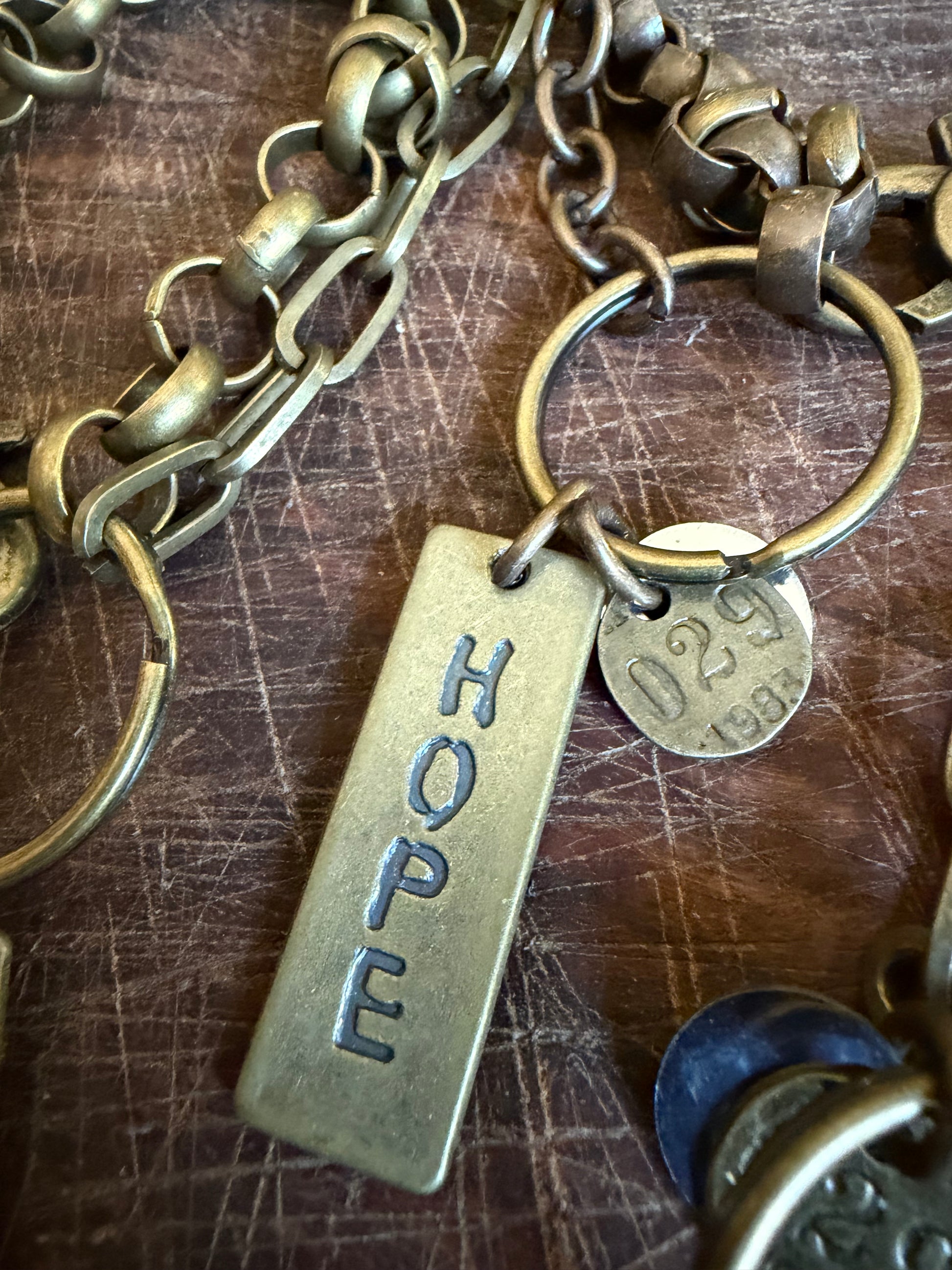 - Brass Chain 7” bracelet with 2 1/2” charm