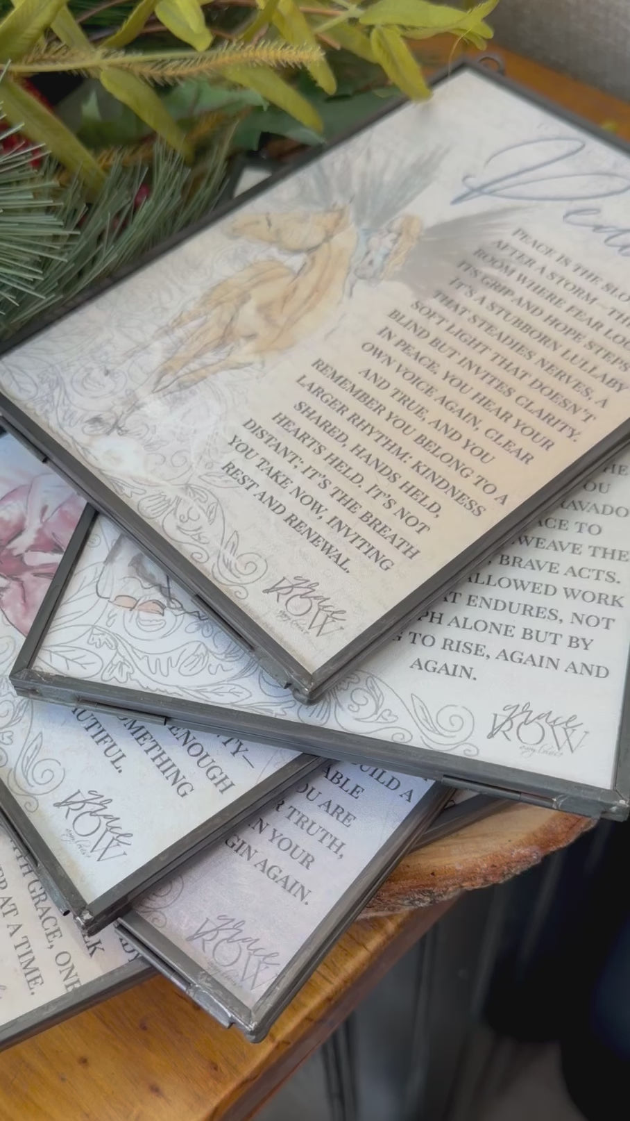 “Enough” from Grace Row Art arrives as a tender 5x7—an angel resting in soft hues of blush, ivory, and dove grey, offering calm where life feels loud.This two-sided print lets you choose your moment: