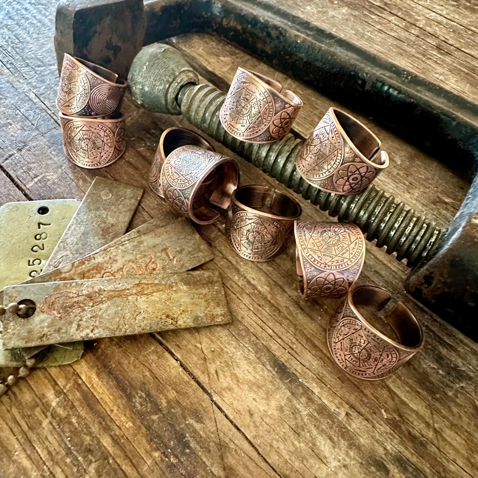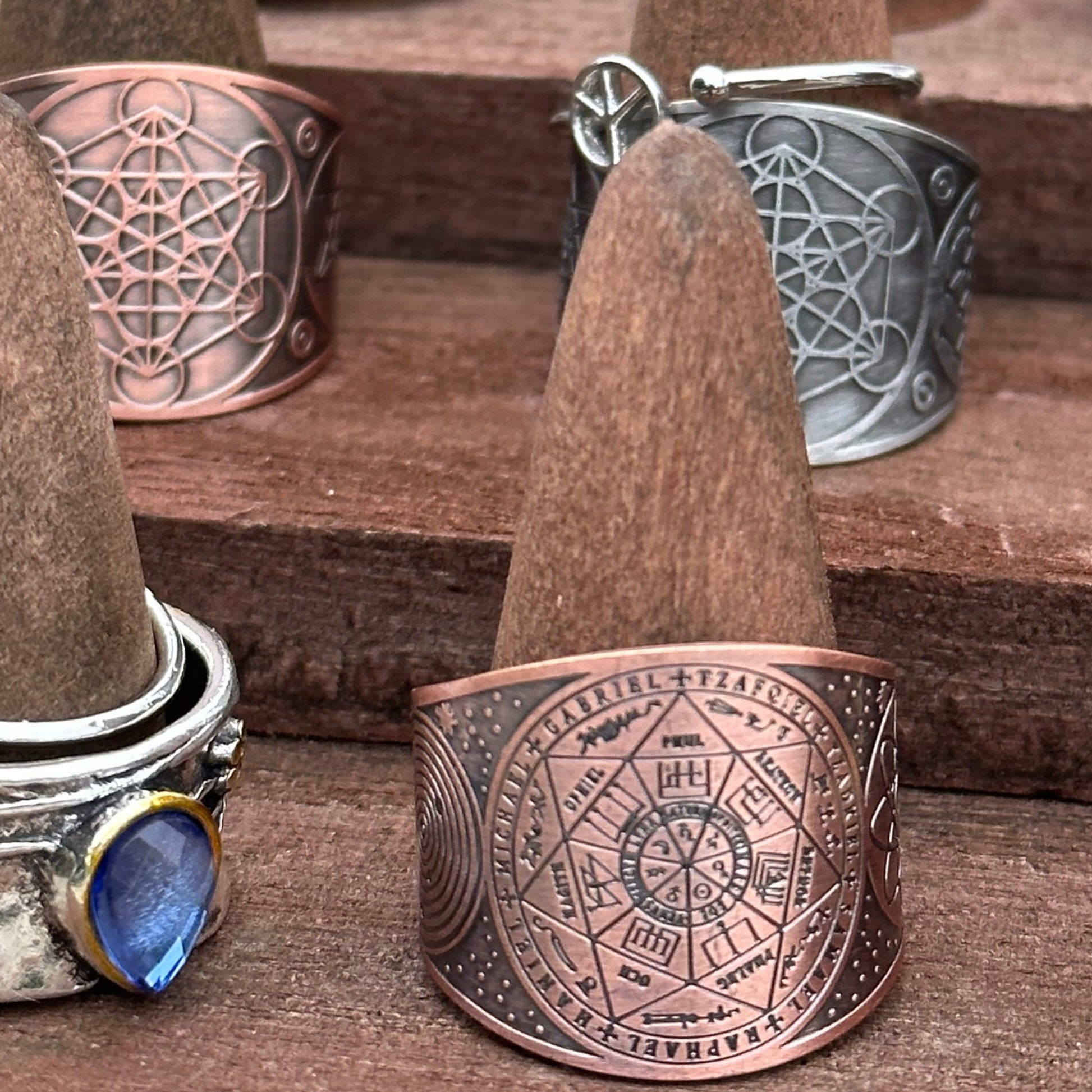 Express your personal style and stack with your favorites. Our Seal of The 7 Archangels Protection Ring Amulet Metatron is copper-plated. In sacred geometry, Archangel Metatron, the angel of life, oversees the flow of energy in a mystical cube known as Metatron's Cube. This cube contains all of God's geometric shapes and represents the patterns that makeup everything God has made. It is sizable to style.
