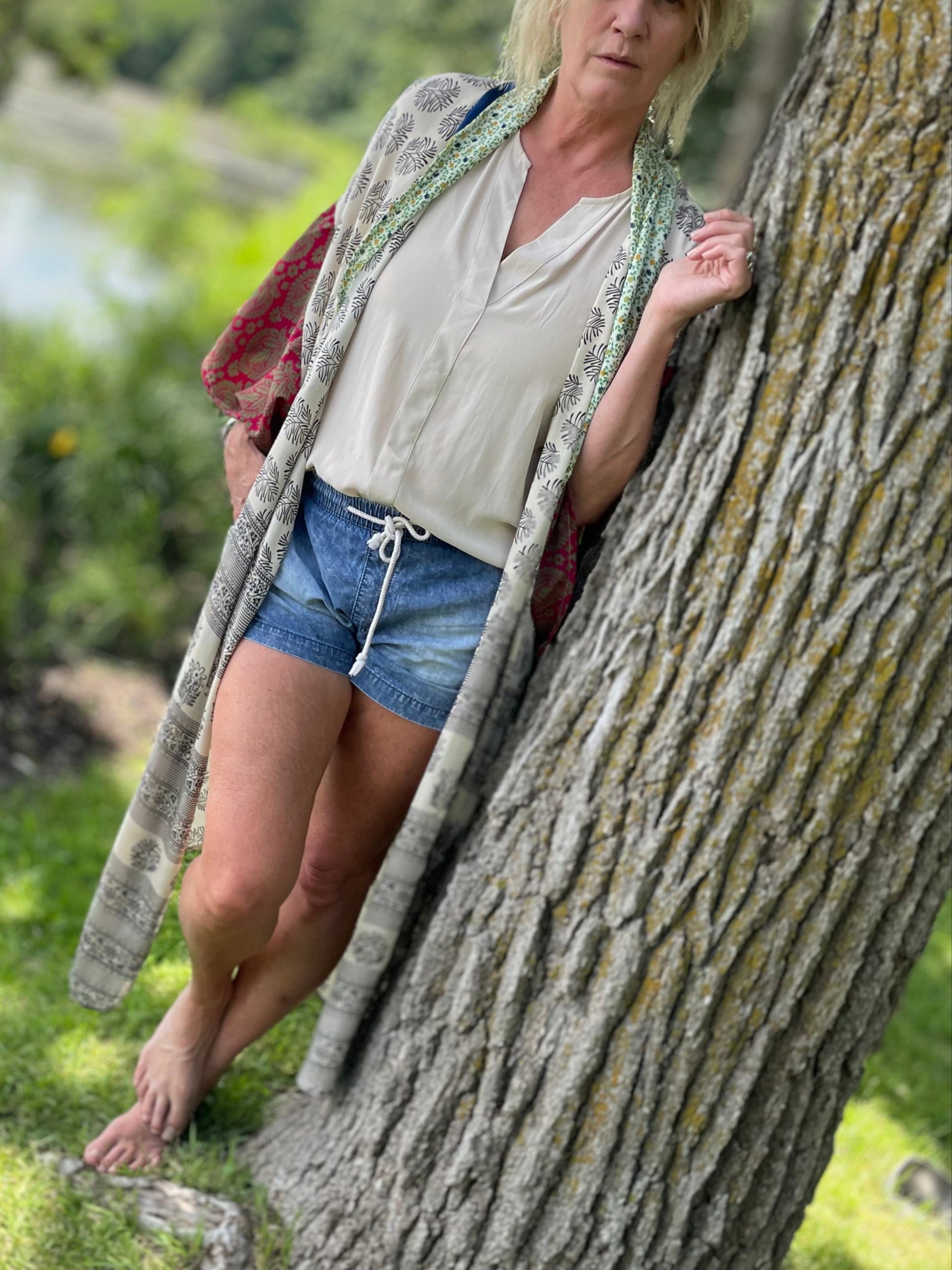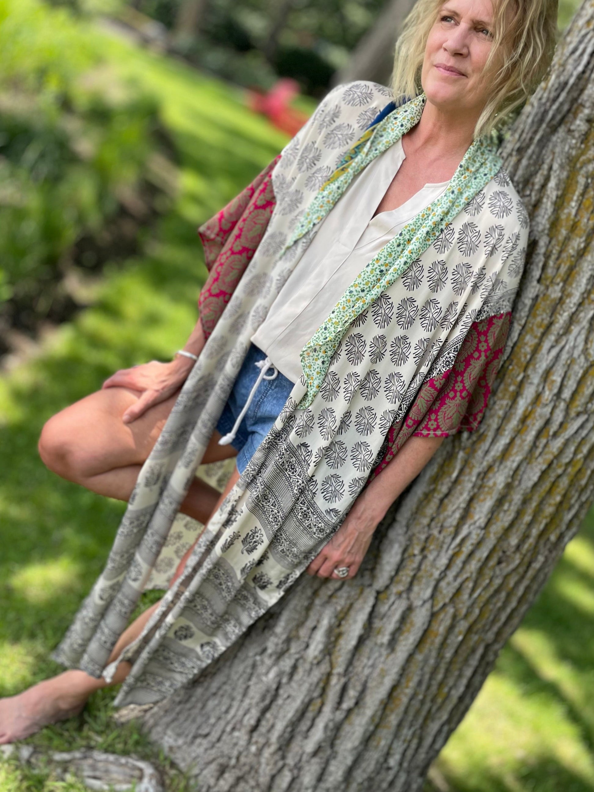 Each recycled silk duster is completely one-of-a-kind, lightweight, and beautifully supple and soft.