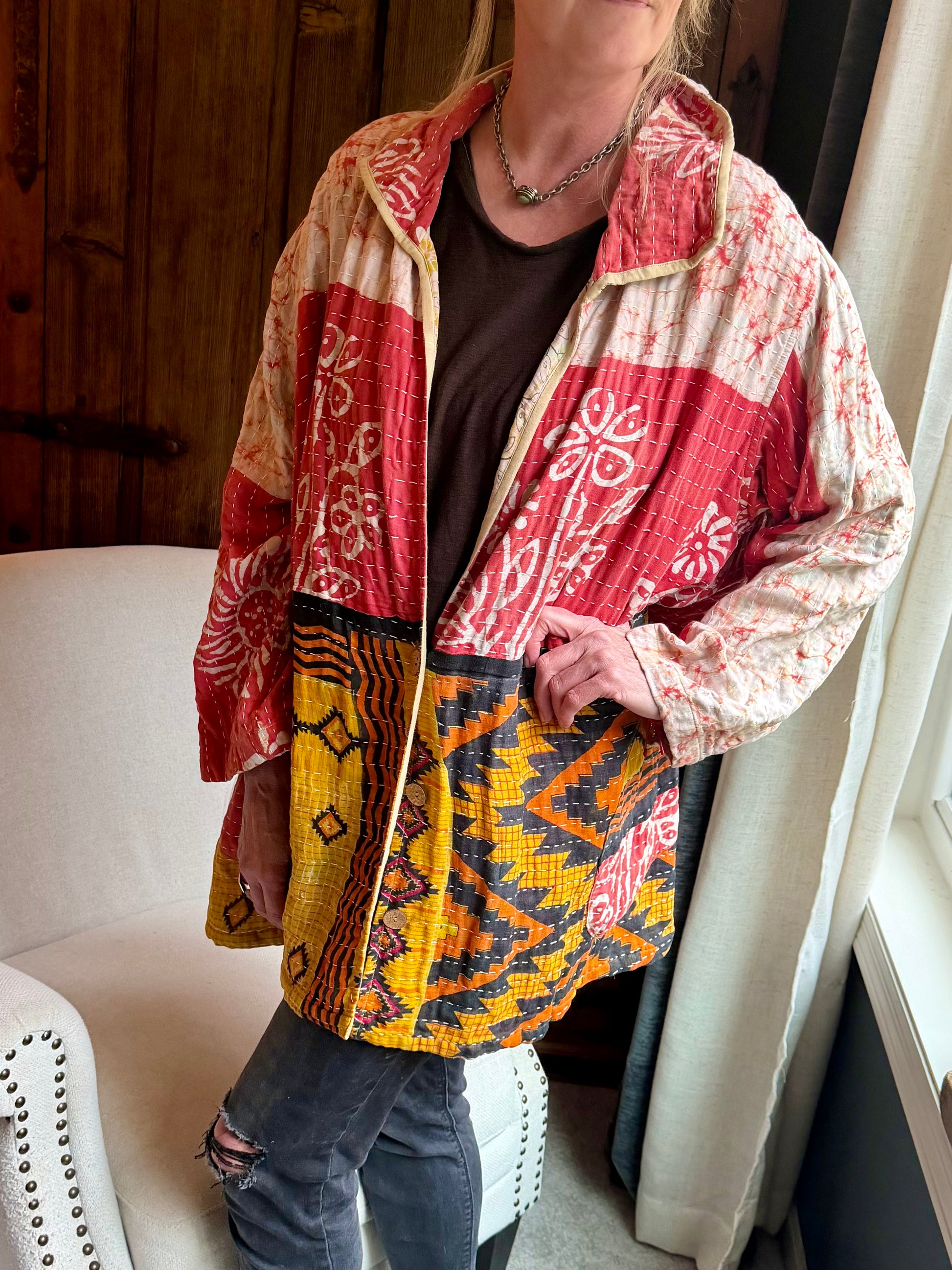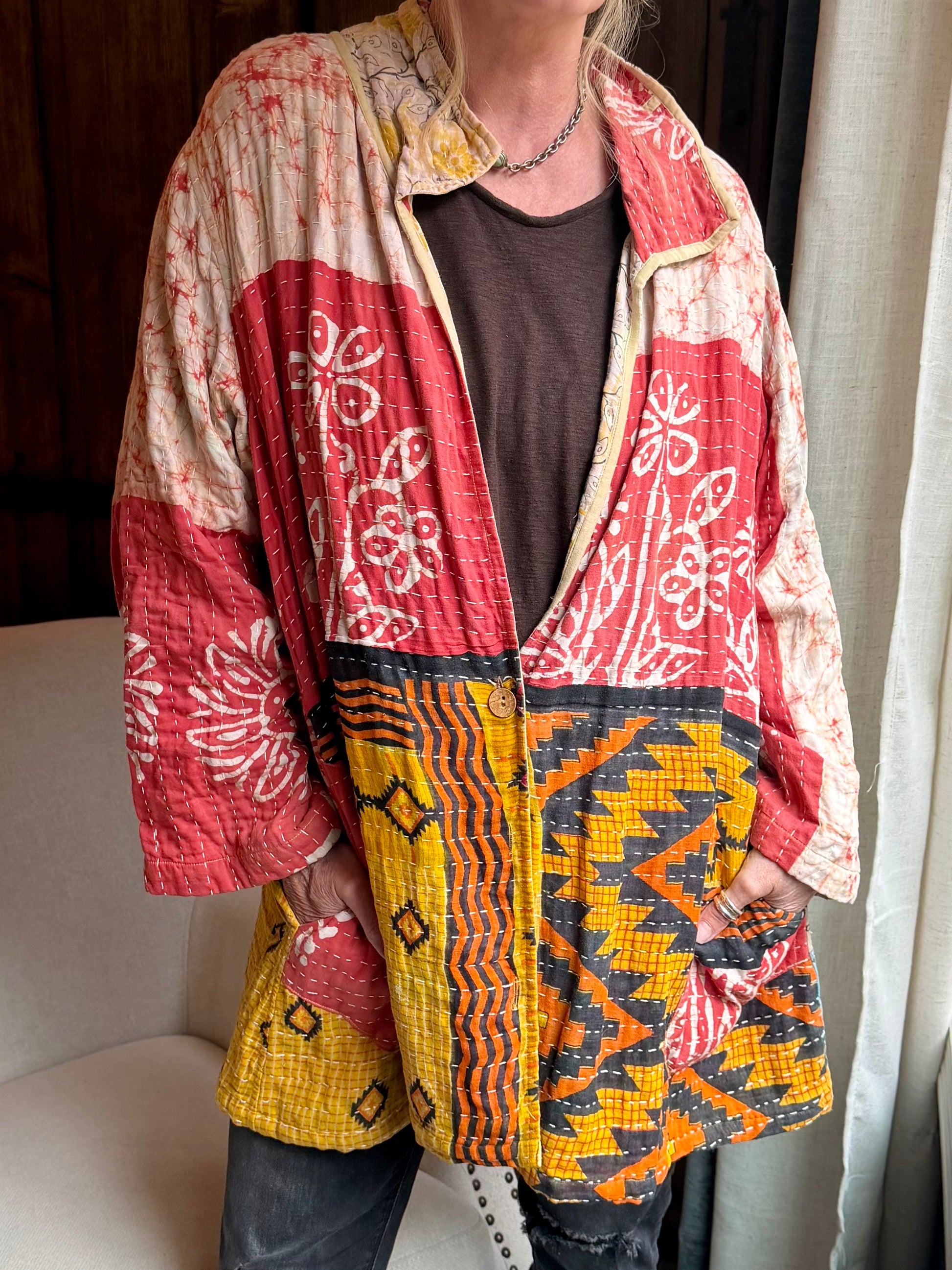 Button-Front Kantha Jacket – Reversible Bohemian Blazer