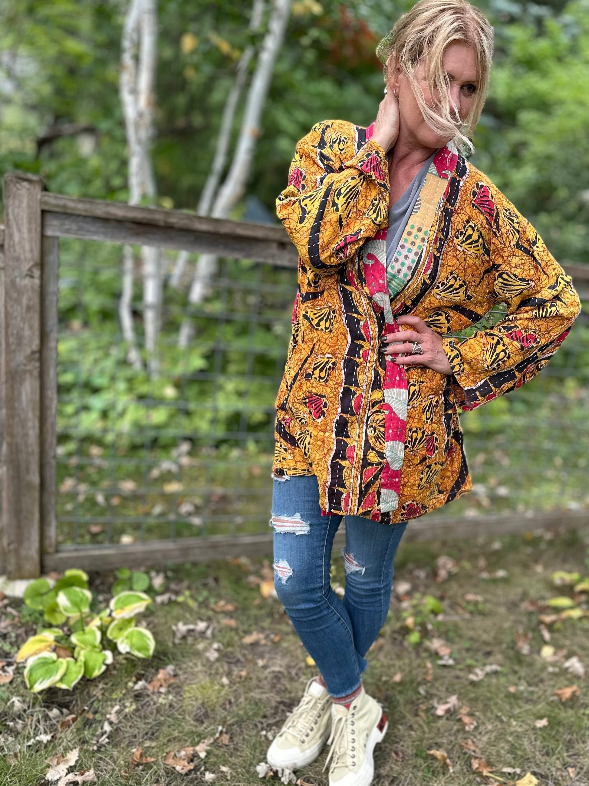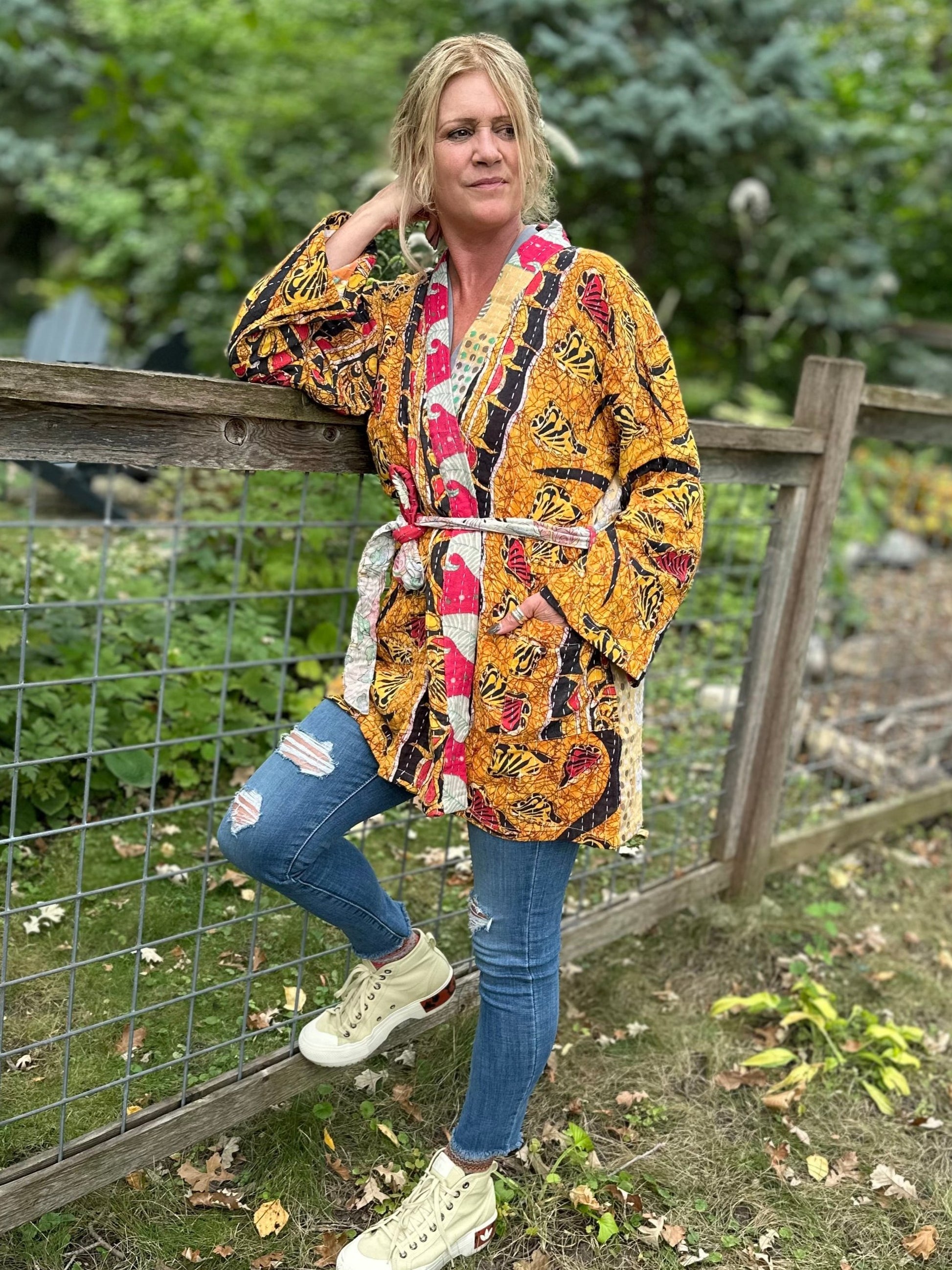 These luxurious and unique cotton robes are crafted from vintage recycled kantha, ensuring both comfort and sustainability. Featuring two convenient pockets and the option to be tied or worn open as a jacket, these reversible robes showcase a completely different pattern on the inside, adding an element of surprise and versatility.